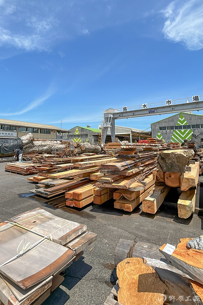 ということで、汗の張り付く蒸し暑い6月の銘木市場でした〜。