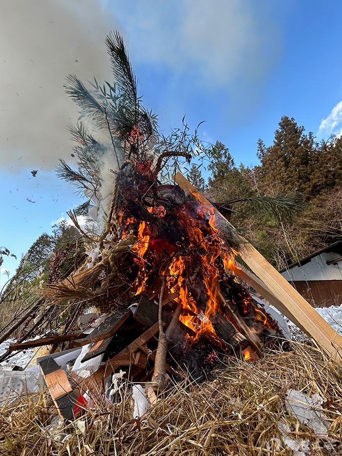 ちなみに木地師の里の地域のどんど焼きは色々と特殊でして、年男(年女)がどんど焼きに火をつけたあとに、その年の恵方から反時計回りに3周します。