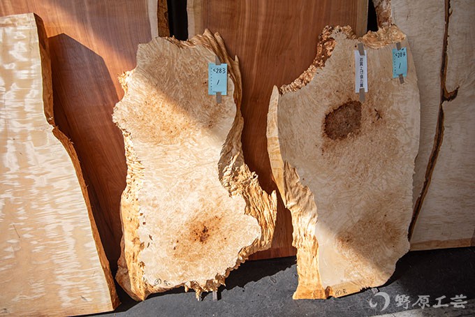 今回の目玉?とても模様の細かい栃の瘤が出ていました。色も白く良い感じ。