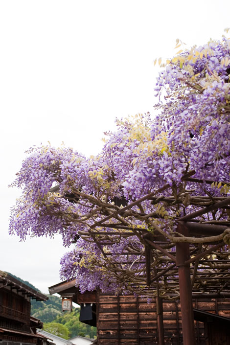 GW中の妻籠宿、すっかり葉桜になって、花桃も終わりがけとなって来ましたが、今度は藤の花が見頃を迎えています♪