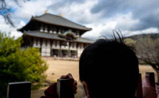 写真左:入り口から池を挟んで反対側から。写真右:光の回廊のクリスタルガラス