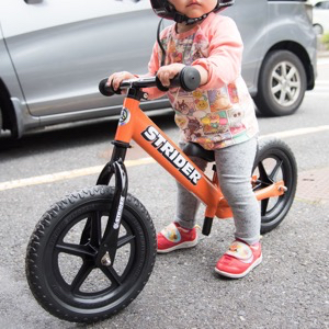 ストライダーは対象年齢2〜5歳までのペダルがなく、足で蹴って進む自転車で、バランス能力を養い、上手く乗れるようになると、通常のペダルのある自転車にスムーズに移行できる、幼児用遊具になります。